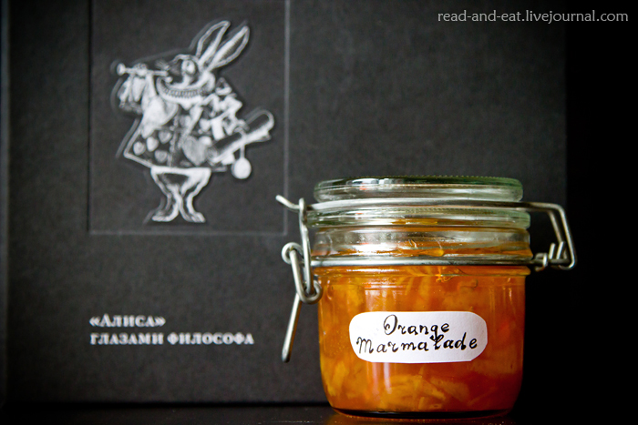 Які ласощі найчастіше асоціюються з керроловской «Алісою»? Звичайно, пудинги! «Аліса, це пудинг! Пудинг, це Аліса! »Про них я писала в одному зі своїх давніх постів, ще до того, як моє захоплення британської кухнею прийняло свої нинішні масштаби: http://readandeat.ru/2011/06/23/carroll_puddings/ Зараз я б провела це дослідження зовсім по-іншому, але все ж оце піст має цінність саме на правах першого знайомства. Що і символічно в контексті книги 🙂 Повертаючись до іншої їжі з Країни Чудес і Задзеркалля, наступними, напевно, повинні бути згадана пиріжки з позначкою «З'їж мене». Тут теж не все так просто і заслуговує на окрему розповідь. Але не цього разу 🙂 Що ще? Насправді, якщо читати текст уважно, то ми виявимо, що згадок різної цікавої їжі в ньому набагато більше, ніж здається. Починається це вже на перших сторінках, як ми бачимо по цитаті. Тут ми сьогодні і затримаємося, тому що апельсиновий мармелад - це тема, яка заслуговує на окрему розмову.
